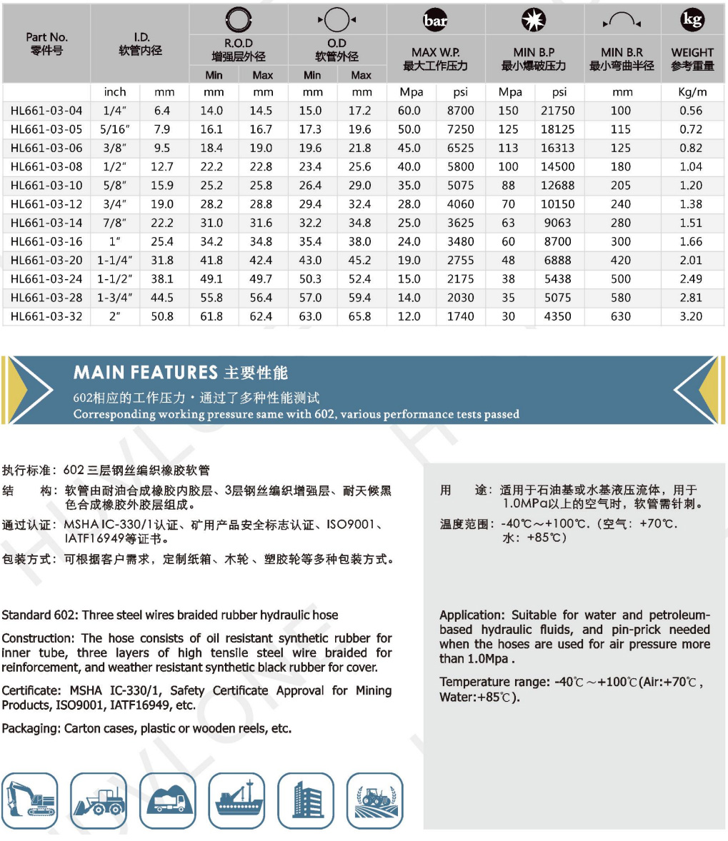 產品用途:適用于石油基或水基液壓流體,用于1.0MPa以上的空氣時,軟管需針刺。