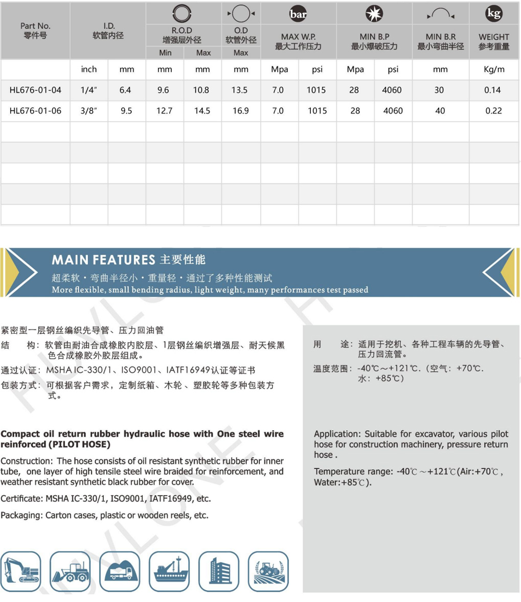 緊密型一層鋼絲編織先導管、壓力回油管