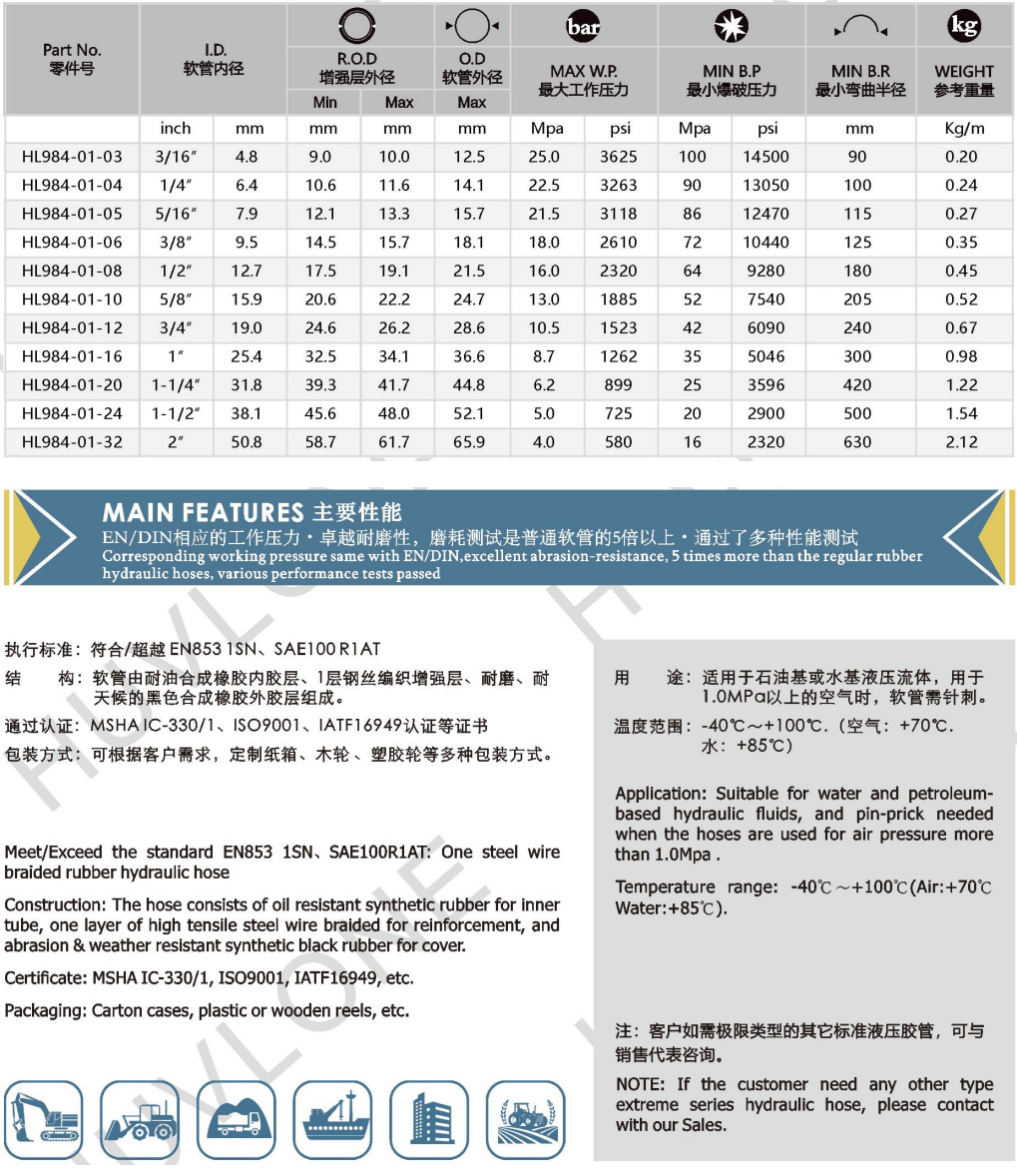 產品用途:適用于石油基或水基液壓流體,用于1.0MPa以上的空氣時,軟管需針刺。