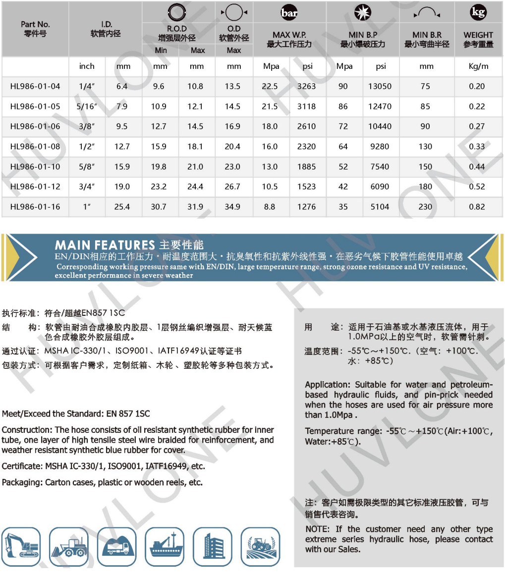 產品用途:適用于石油基或水基液壓流體,用于1.0MPa以上的空氣時,軟管需針刺。