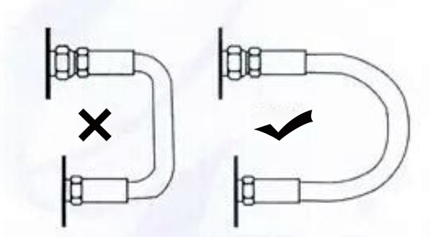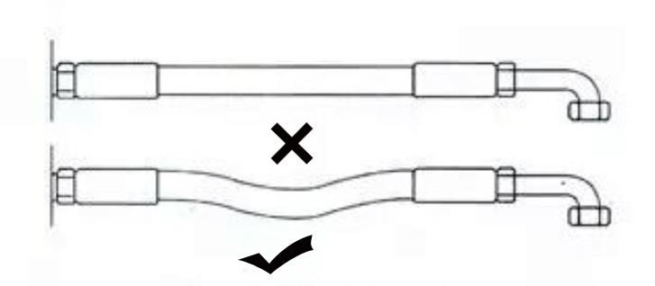 正確安裝膠管至關重要,如果膠管過長不但影響外觀,而且增加成本。如果膠管太短,當其受壓而伸展或收縮時,沒有足夠的伸縮余地,會導致膠管被破壞。以下各圖顯示安裝膠管時應注意的事項,依此安裝可達最佳的工作效果并延長膠管的壽命。