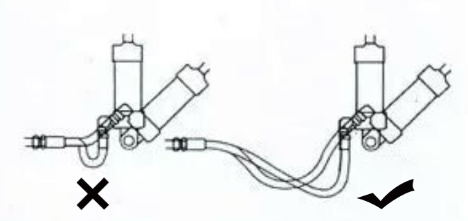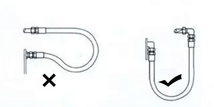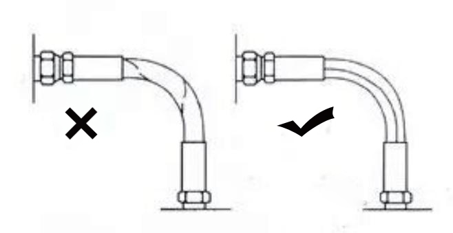 安裝膠管時,切勿讓其扭歪,否則當受壓力時會破壞膠管或令其連接處松脫。