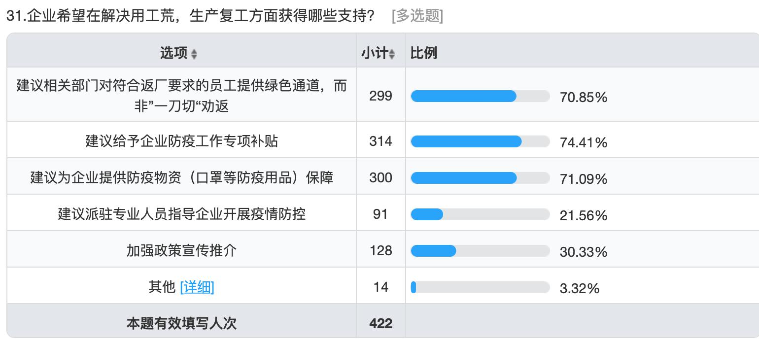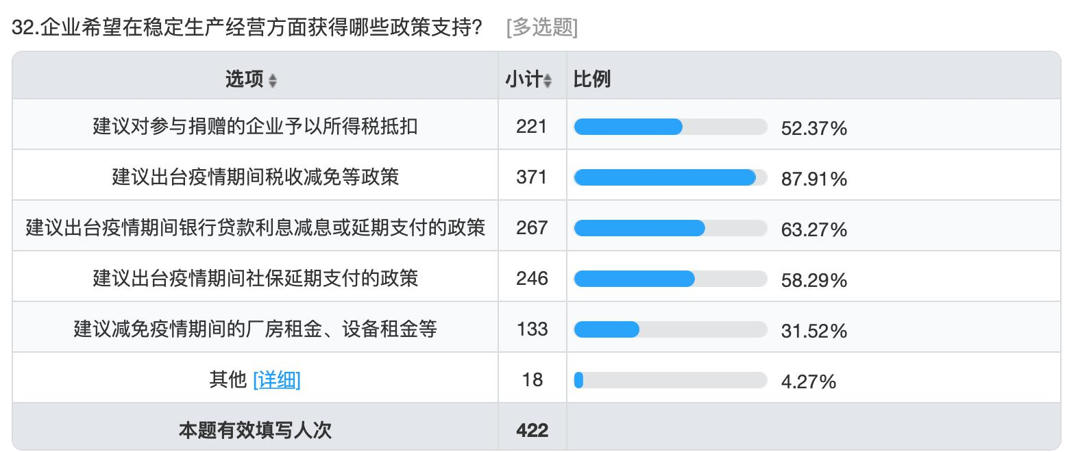 備注:有企業呼吁“各種稅費和利息應該是減免而不是延期““盡快恢復物流”等。