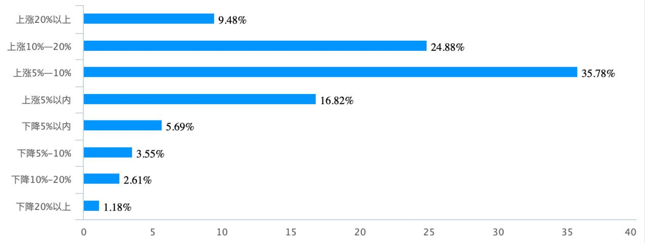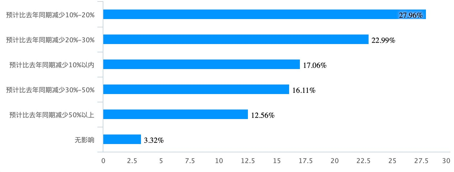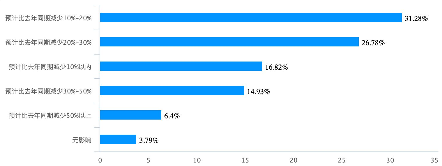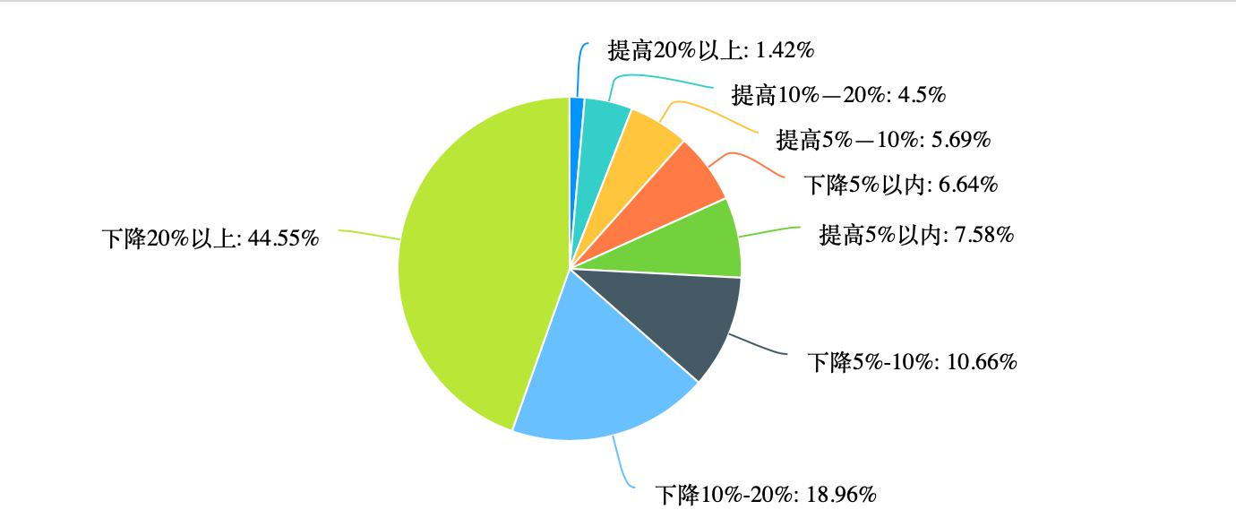 422 份問卷中,有 44.55%的企業認為產能運用較去年下降20% 以上,有 18.96%的企業認為下降了 10%-20%,具體見下圖 8。