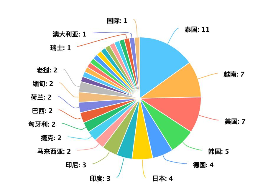 國外市場因產品不同而不完全相同,但主要歐美地區,東南亞,澳洲等國家和地區都有涉及。