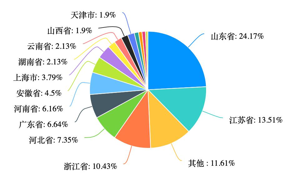 從答卷情況來看,山東省所占的份額較大,其次是江蘇省、浙江省,河北省和廣東省,選擇其他選項的 44 份答卷中,13 家來自遼寧省、10 家來自四川省、8 家來自江西省、,其余來自貴州、甘肅、廣西等省市自治區以及一家境外企業。