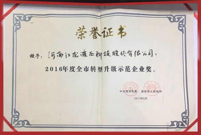 2016年度全市轉(zhuǎn)型升級示范企業(yè)